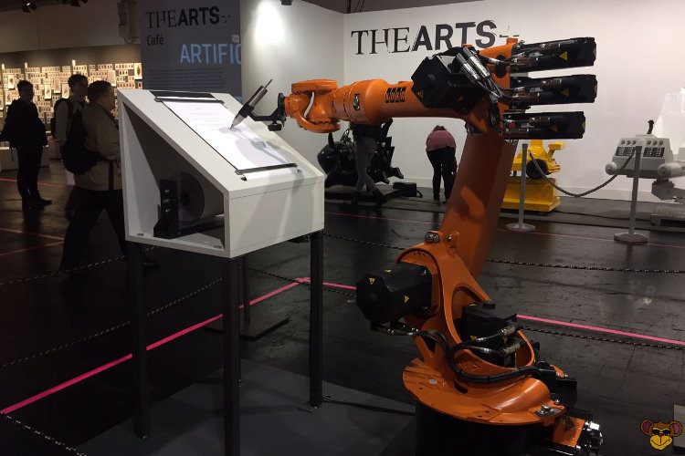 In Halle 4 wurde großes Business betrieben und der Kunst gefrönt: Denn irgendwo müssen die Bücher ja herkommen und irgendwie müssen sie auch verkauft werden. Also präsentierten sich Druckereien neben IT-Unternehmen, die sich auf Kassensysteme und digitale Buchdatenbanken spezialisiert haben. Der harte Kontrast dazu ist der Antiquariatsmarkt, in dem besonders wertvolle Bücher zum Verkauf standen und die Kunst-Ebene in Halle 4.2. Dort widmete man sich einerseits dem Thema „Kunst“, andererseits außergewöhnliche designte „Bücher“ – ein Ort für kleine Verlage mit Hang zum Besonderen eben, auf dem man in der „Art+“-Ecke auf interaktiv werden konnte: VR-Brillen, Workshops und ein Roboter, der an einem Manifest schrieb waren nur einige Möglichkeiten, sich dem Themen „Buch“ und „Geschichten“ auf andere Weise zu nähern.