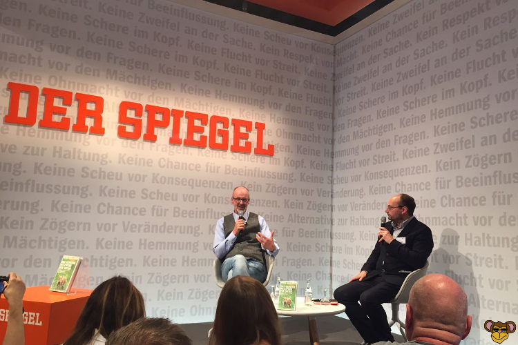 Besonders beeindruckt hat uns das Gespräch mit Peter Wohlleben („Das Seelenleben der Tiere“; 2016/ „Bäume verstehen“; 2011) auf der Bühne am Spiegel-Stand. Der Förster und Autor ist in den letzten Jahren zum Shootingstar seiner Zunft aufgestiegen. Sein Geheimnis liegt in seinen Geschichten über unsere Flora und Fauna. Es ist ein anderer, unkonventioneller Blick auf die Natur. Denn der ist die Menschen ziemlich egal und sie reguliert sich selbst, wenn man sie nur lässt – so Herr Wohlleben.