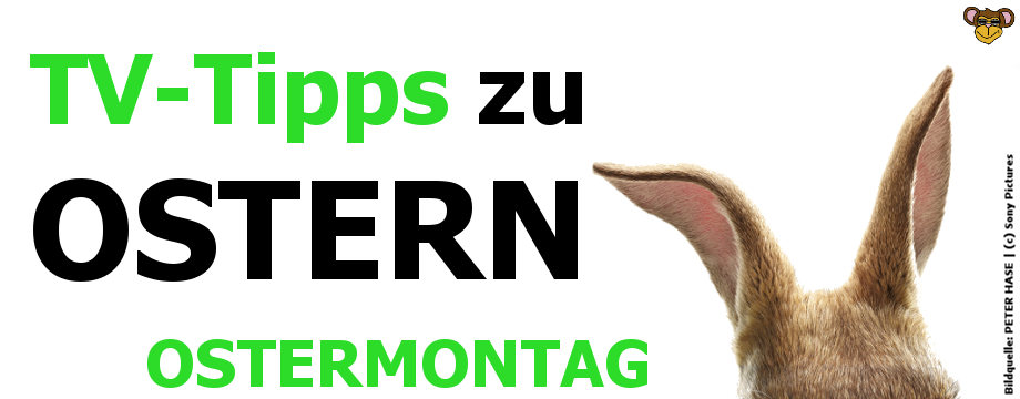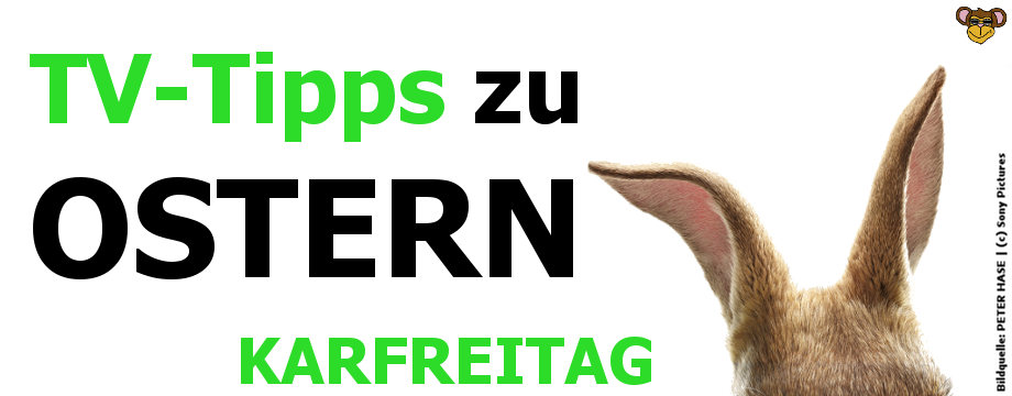 Kleiner Kino-Tipp vom Filmaffen: PETER HASE. Nach den Kinderbüchern von Beatrix Potter erzählt der Film die Geschichte von einem frechen Hasen, seinen niedlichen Freunden und jede Menge Ärger mit den Nachbarn. Seine Öhrchen findet ihr auf unserem Logo der TV-Tipps zu Ostern 2018. Mehr zum Film gibt es hier.